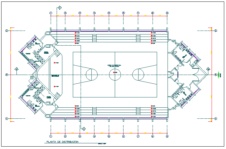 Basket ball court plan view detail dwg file, Basket ball court plan view detail and design plan layout detail with dimensions detail, specification detail