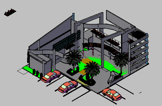 3D Building Structure Layout Shown in DWG AutoCAD Drawing File