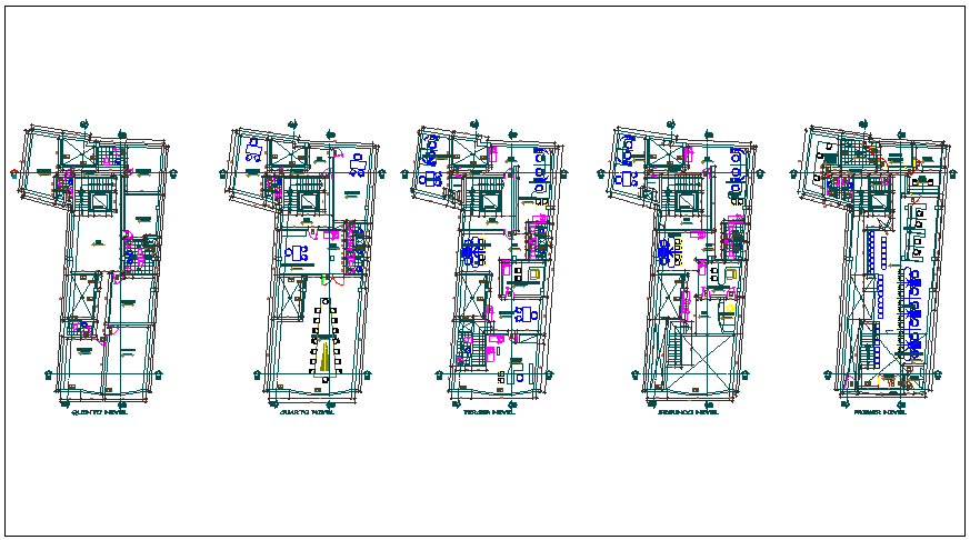 Office building floor plan detail view dwg file, Office building floor plan detail view and design plan layout detail of each floor with specification detail, dimensions detail