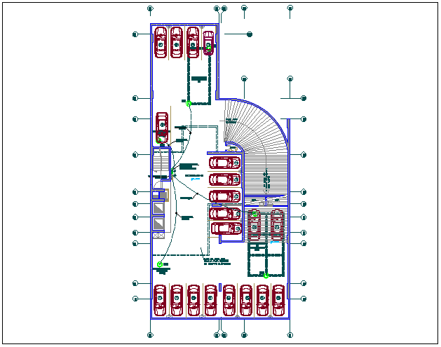 Electrical installation plan in basement dwg file in basement plan with view of parking area view with car parking and electrical line view with electrical installation with necessary detail.