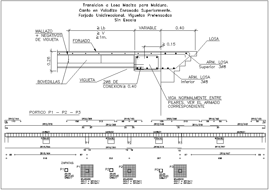 Slab structure detail view dwg file, Structure detail view with specification detail, dimensions detail, reinforcement detail, steel bars size detail, section plan detail view etc