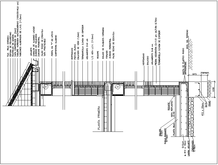 Wall section view detail dwg file, Wall section view detail with specification detail, denotations detail, floor detail, concrete detail, window space detail etc
