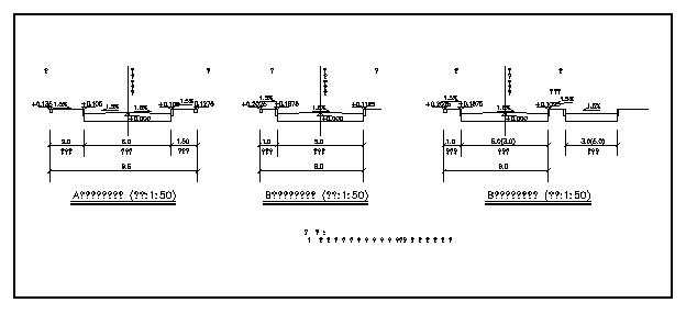 Here the Road section detail design drawing with Road A standard cross-section (ratio: 1:50), Road B standard cross-section (ratio: 1:50), Road B typical cross-section (ratio: 1:50) and the size of the figure, in addition to the description of the elevation, the other are in meters.in this auto cad file.