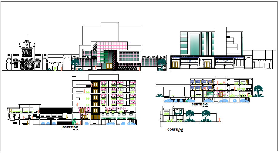 and designer support and wall view with balcony,flooring and stair view with other axis section view.