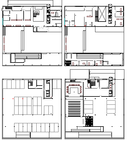 Ground, first, second and top floor layout plan of government council building dwg file.