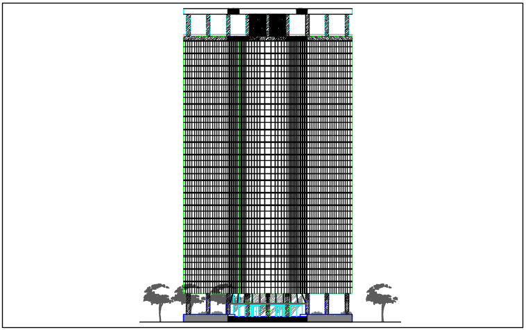 High rise building elevation plan detail dwg file