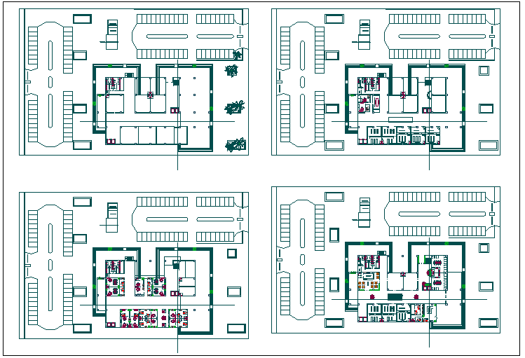Floor plan of corporate building dwg file in floor plan with area distribution and flooring view and view of office area with table,chair and computer view and washing area view.