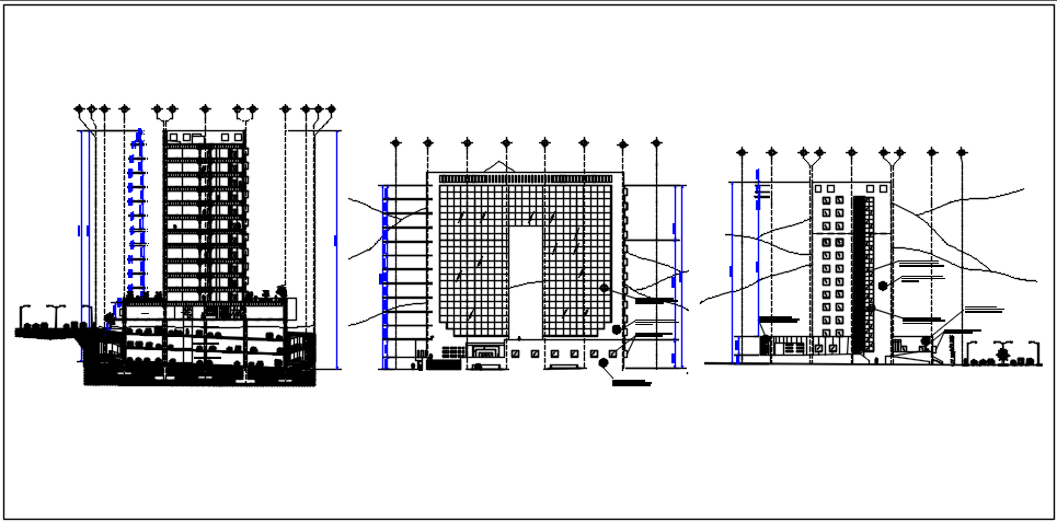 High rise building elevation plan detail dwg file, Elevation high rise building plan front elevation design door, window elevation, stair detail, etc.