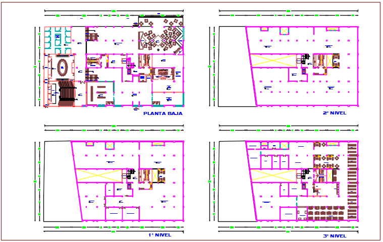 Commercial plan detail of ground floor plan, 1st floor plan, 2nd floor plan, 3rd floor plan and furniture detail, lunch table, celler plan detail in column detail, etc.