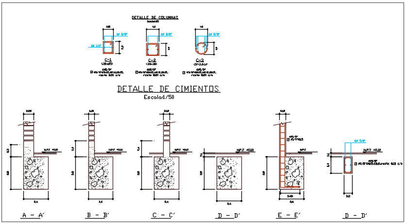 Column section and elevation detail dwg file