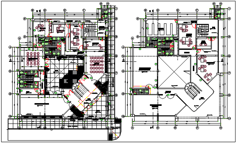 Center line plan in commercial plan detail dwg file, Center line plan in commercial plan detail in furnisher detail, chair, table, main office, reception table, wetting room, employment, meeting room, dimension detail, etc.