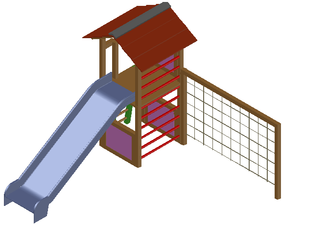 Slider dwg file, Slider with elevation view, having ladeer one side and sloping roof, fence one and also having slippery surface ladder, etc.