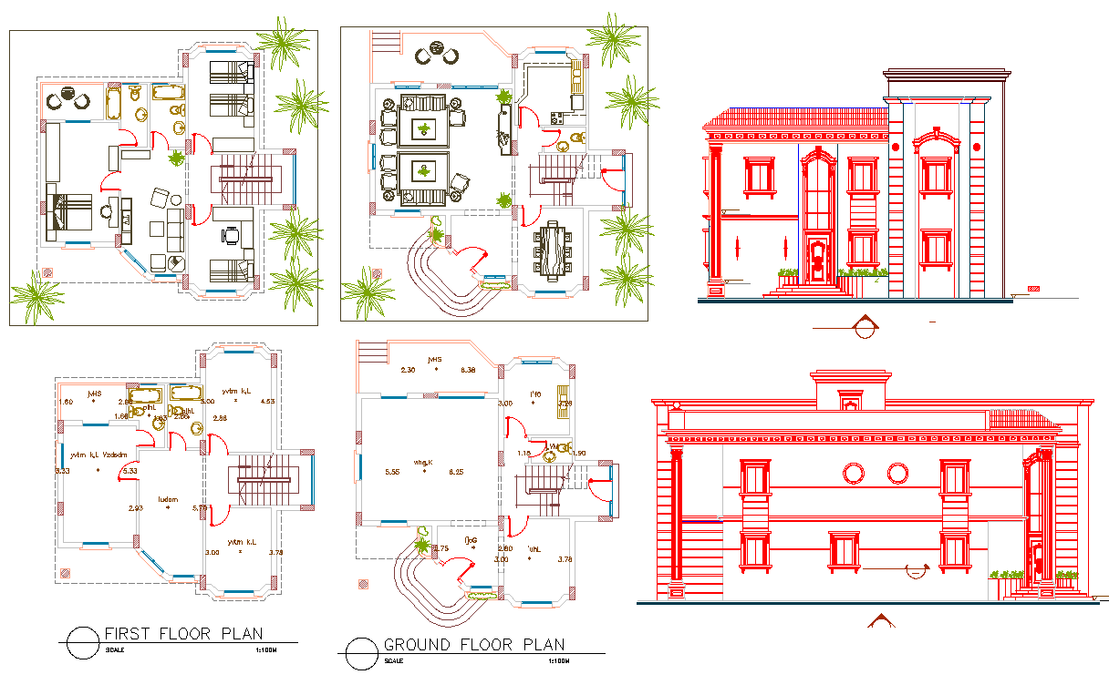 Modern Villa dwg file. The architecture layout plan of ground floor plan and second floor plan with furniture detail and elevation design of Modern Villa project.