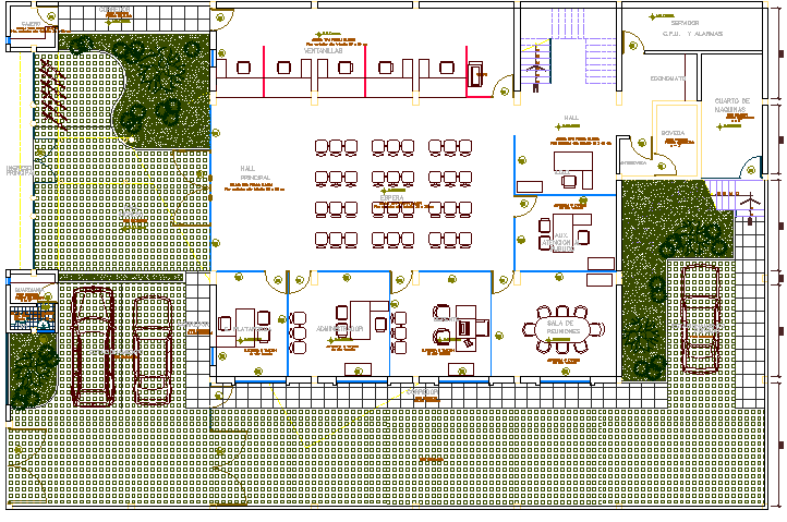 Landscaping with structure of national bank dwg file