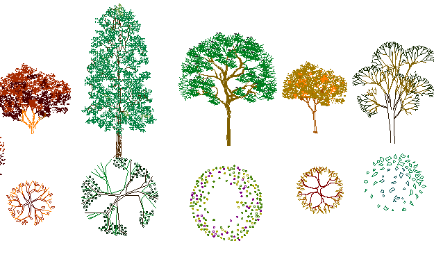 Common tree blocks details dwg file. Common tree blocks details that includes a detailed view of different kind of trees and plant of garden in different sizes.