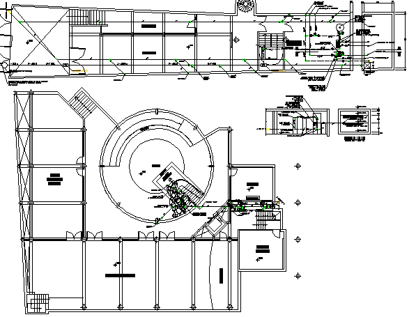 Municipal office building cut section with structural layout plan dwg file