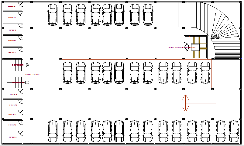 Basement car parking lot floor plan details of multi-purpose building dwg file