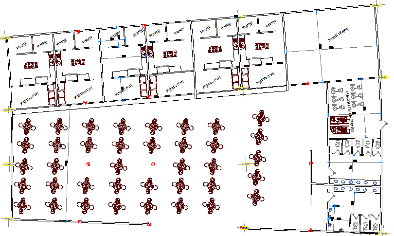 Terminal shopping mall architecture layout plan details that includes a detailed view restaurant, mobile shop, offices, corporate offices, theater, game point, sanitary installation, staircase elevator, sitting area and much more of mall layout plan details.