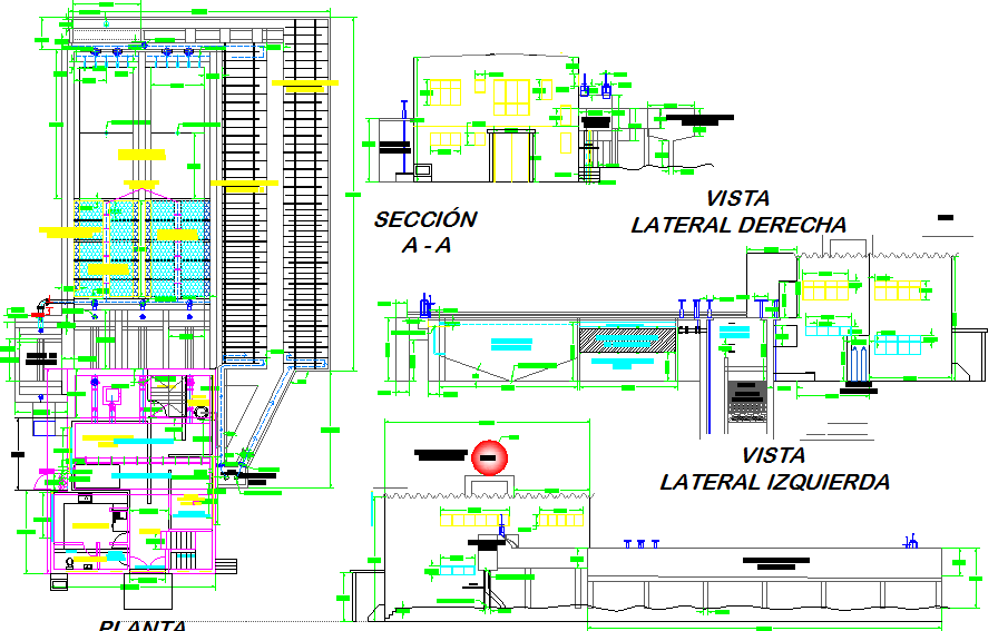 Plant treatment drinking water plan dwg file, layout plan of a plant , contrains elevation details and sectional layout