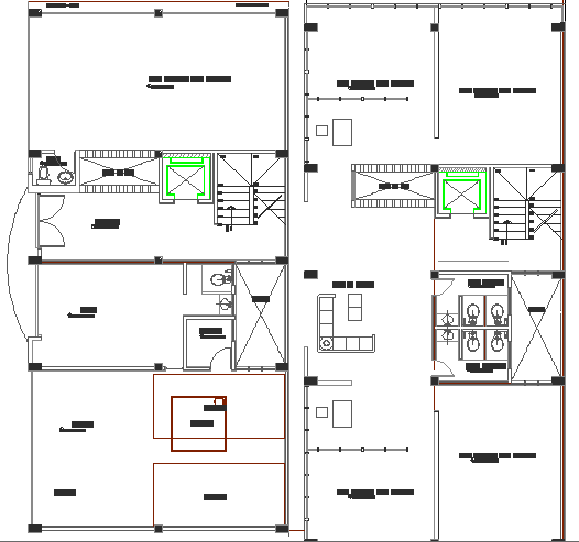 Ground and first floor plan layout of multi-flooring admin office building dwg file