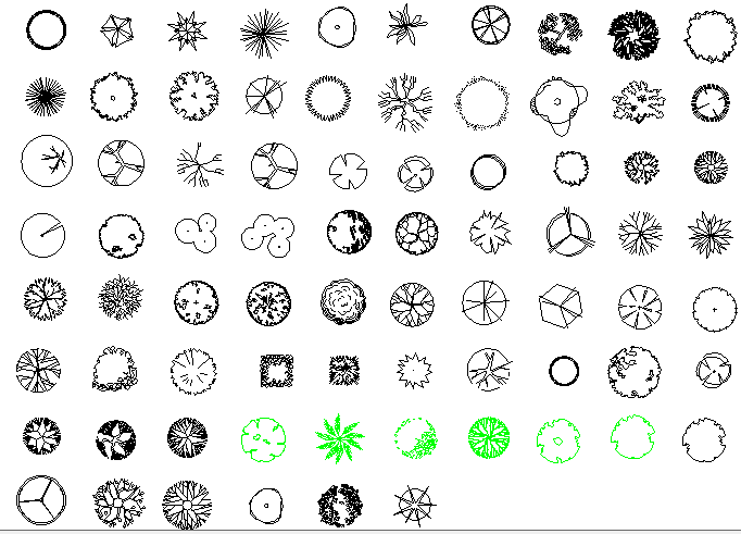 Blocks of trees and plants for garden that includes a detailed view of trees and plant in different sizes and types for garden.