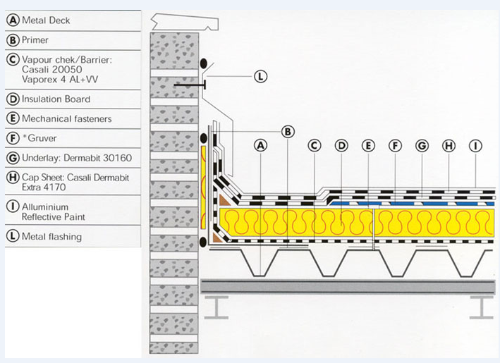 Roof construction architecture project that includes a detailed view of supportive pillar construction of roof, beam construction, concrete base floor, material details and much more of roof construction details.