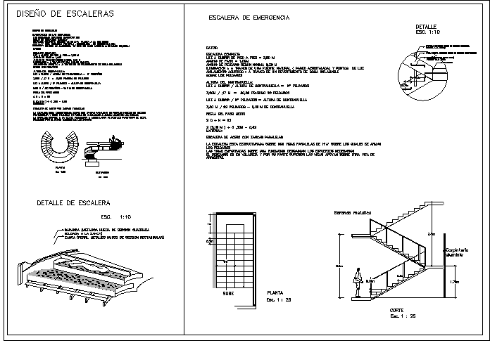 Fire Escape Emergency Staircase CAD Drawing with Construction Details