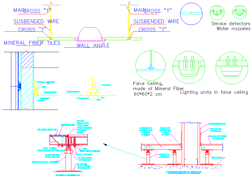 False ceiling and lights dwg file, sectional detail of false ceiling with measurements and lighting detail