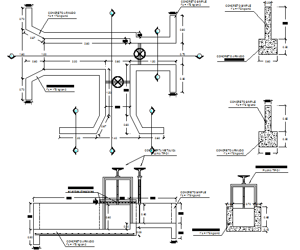 Irrigation channel gate detail concrete construction details manual excavation for floors and slopes, land compacted manually before emptying the floor, concrete for floor and wall, visible face forming, installation of the metal gate and much more of channel gate details.