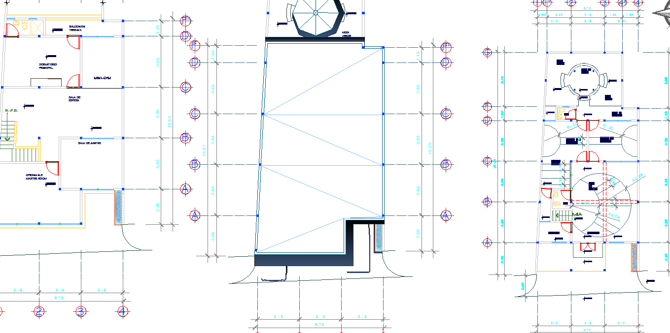 Three floor layout plan dwg file