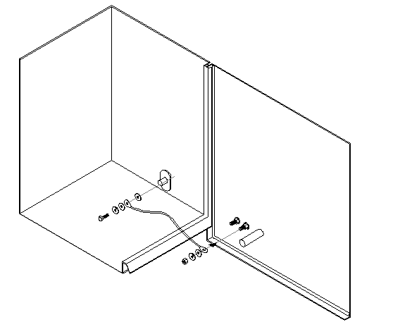 Electrical ground installation in a cabinet details that includes a detailed view of electrical box, switches, cable pane details, plug installation and much more of cabinet electrical installation details.