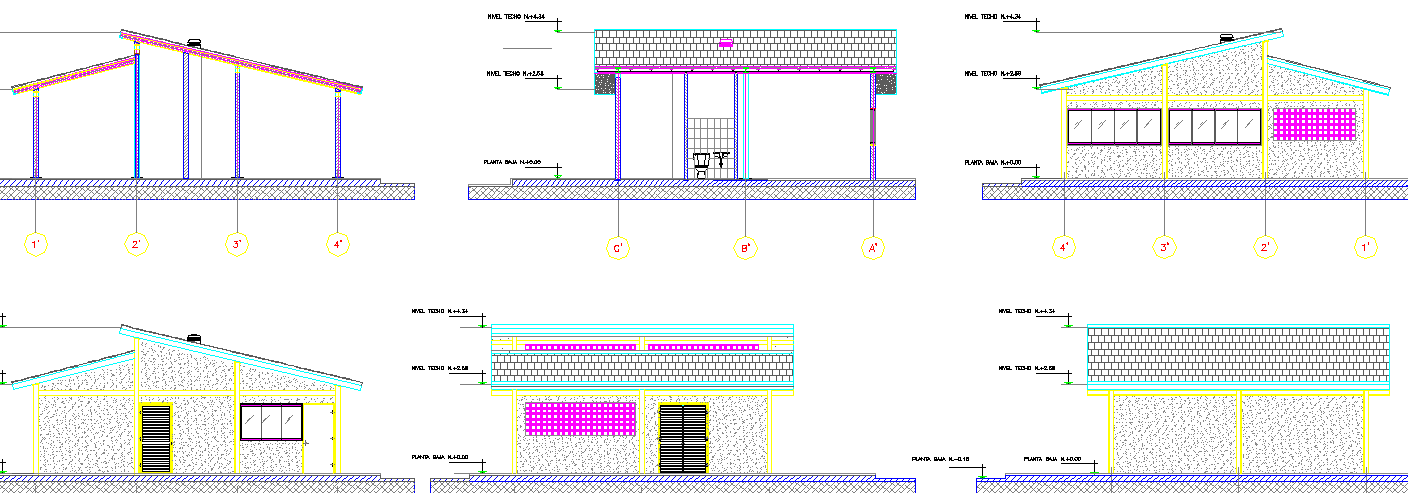 Utility building--masonry light weight roof elevation dwg file, elevation design, cement detailing, sectional detail