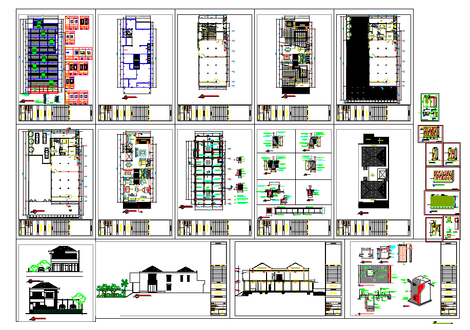 House plan dwg file. Structure plan, foundation plan, construction plan, door & window design, furniture plan, roof plan, section plan and elevation design of House plan.