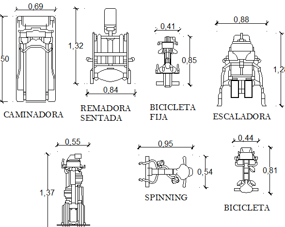 Common gym blocks design details that includes a detailed view of different kind of gym equipment in different sizes for different exercises and much more of gym blocks details.