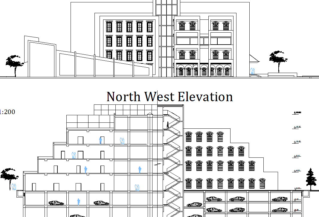 Elevation of a municipal building dwg file,elevation of a building dwg file, here there is elevation of a building, front elevation design, posh building design, corporate building structure
