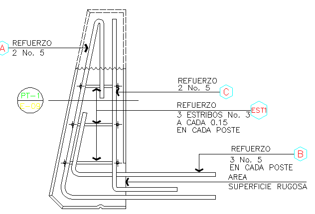 Bridge railing concrete construction details that includes a detailed view of reinforcement, strikes, pole, rough surface, measures, cuts, joint and much more of bridge construction details.