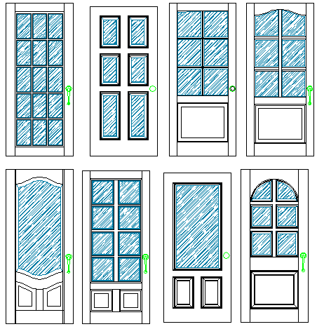 Modern design of door blocks that includes a detailed view of different kind of doors like small doors, single doors, double doors, wide doors and doors in different sizes and design.
