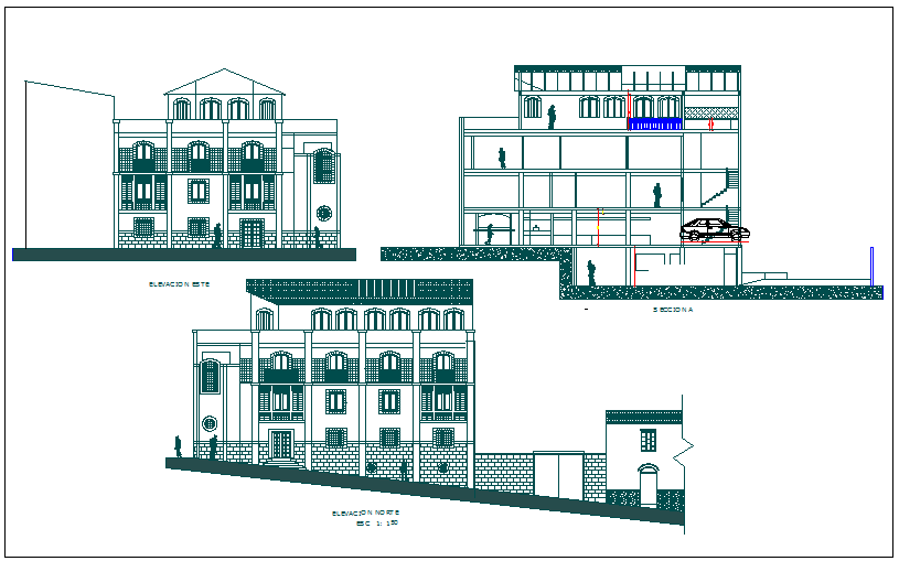 Elevation of a building dwg file, elevation of a traditional building , old type construction detail