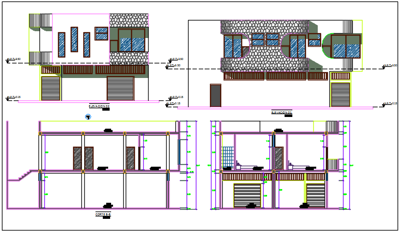 Elevation plan detail dwg file, Elevation plan detail with dimension detail and naming detail, elevation detail window detail in the elevation 3” up detail, curve shape elevation detail, etc.