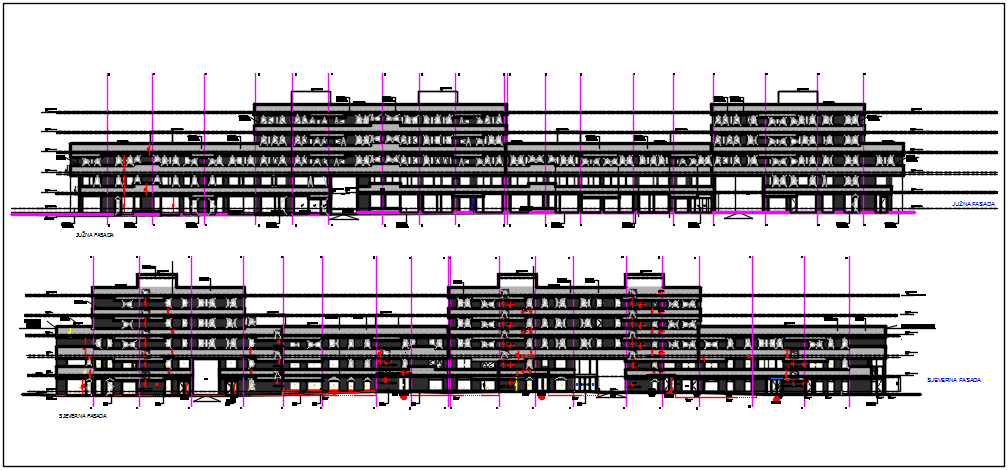 Commercial elevation plan detail dwg file, Commercial elevation plan detail with dimension and naming detail, office plan main entrée detail in elevation plan detail, tank detail in elevation detail, etc.