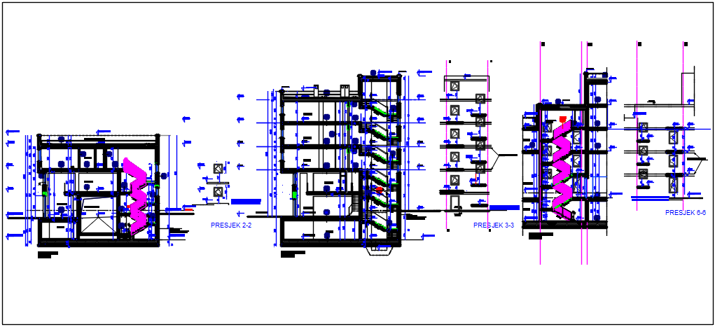 High rise building elevation and section plan detail dwg file