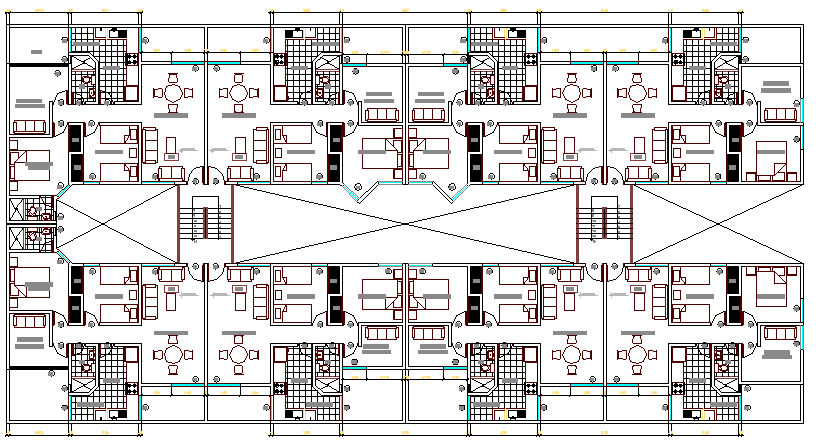 Second floor layout plan details of multiple housing building that includes a detailed view of main entry door, family hall, living room, dining area, kitchen, bedroom, master bedroom, passage, laundry and much more of floor layout plan details.