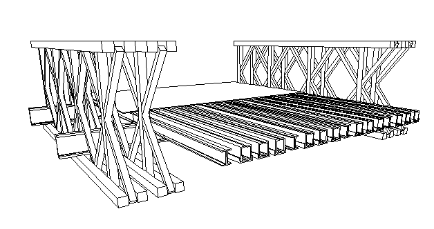 Wooden bridge of garden architecture project that includes a detailed view of front view of bridge with floor of bamboo, wooden railing details, supportive pillars and much more of wooden bridge details.