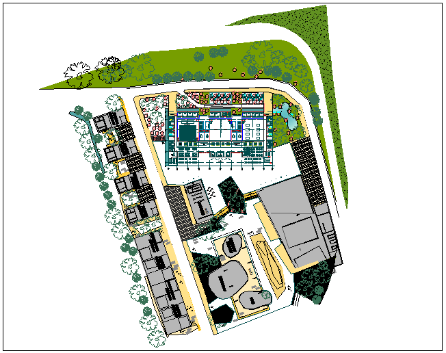 Layout plan of a hotel dwg file, here there is layout plan of hotel, containing all details, furniture , landscape, space, luxurious hotel design in auto cad format