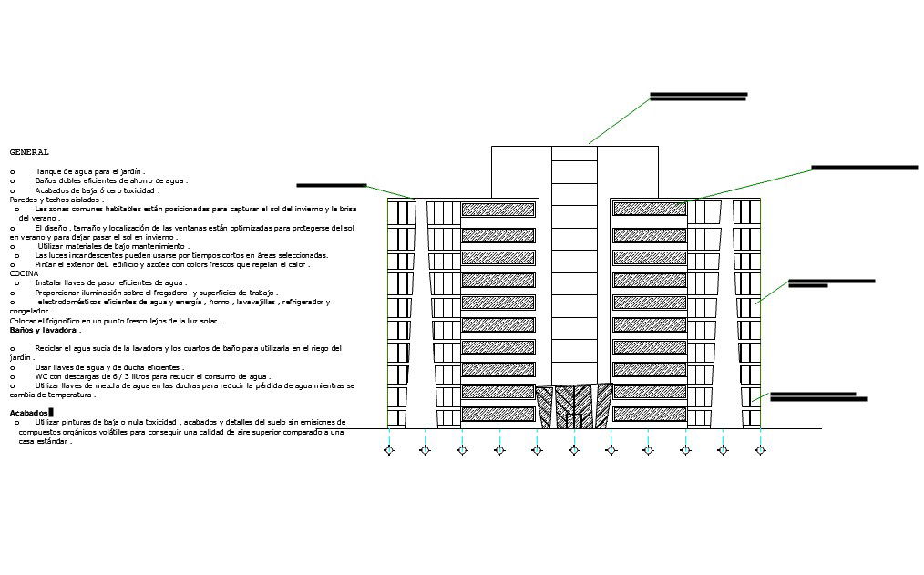 Construction view of building dwg file in elevation with building floor and domes of light and window view.