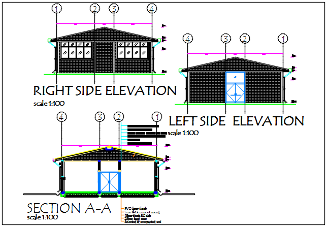 Left side elevation and right side elevation and section A-A’ detail dwg file