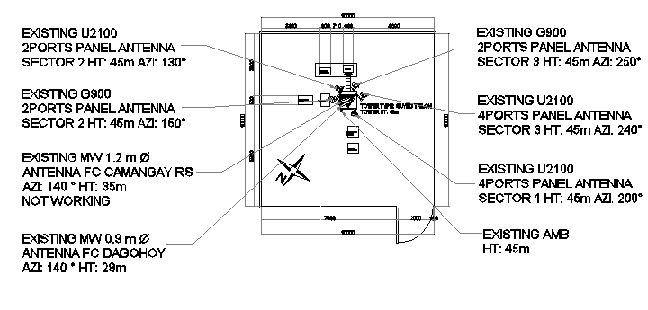 Cabin details of Danao regional electric tower that includes a detailed view of battery bank, cable panel, tower hit, legged sst view, existing multiple antenna, existing multiple ports, legged electric installation view, dimensions, cable details like jumper cable, feeder cable etc, radio room, fuel tank, wire gen-set and much more of tower installation details.