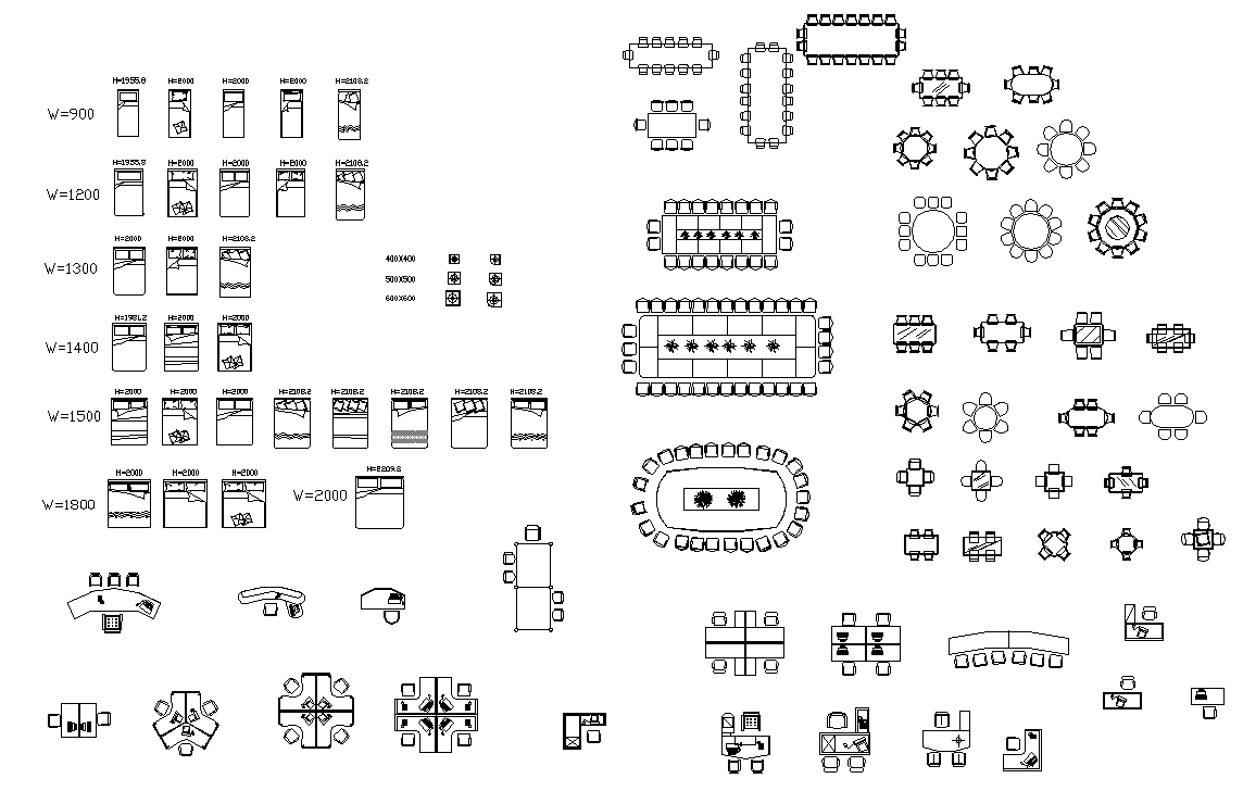 Furniture Blocks dwg file. Furniture cad blocks include double bed, dining table, meeting table and office desk