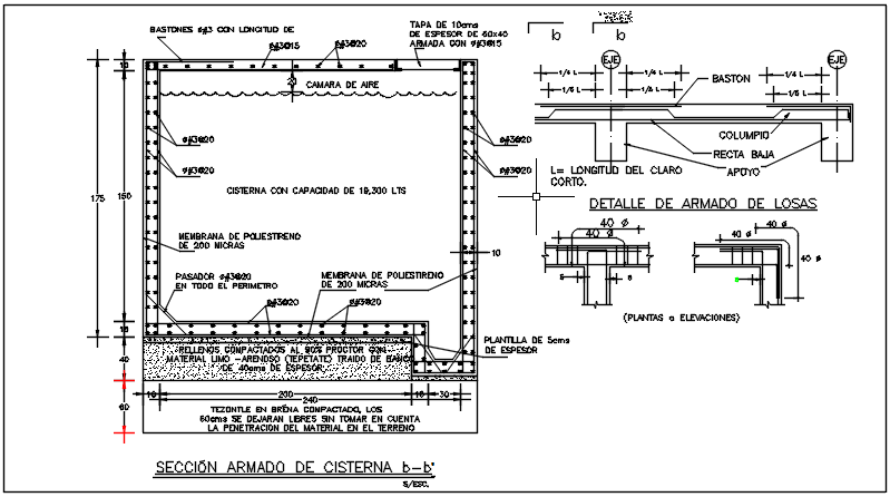 Section of armado de cisterna detail dwg file, Section of armado de cisterna detail with reinforcement detail, dimension detail, naming detail, etc.