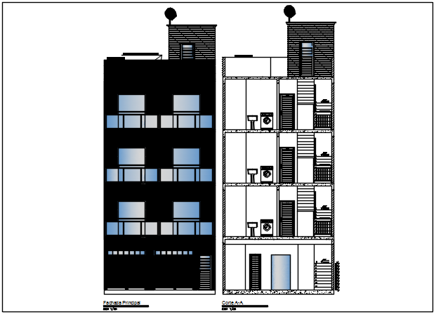 Elevation and section plan detail dwg file, Elevation plan detail with front elevation and naming detail, front elevation detail window detail in the elevation 3” up detail, reeling detail, etc.